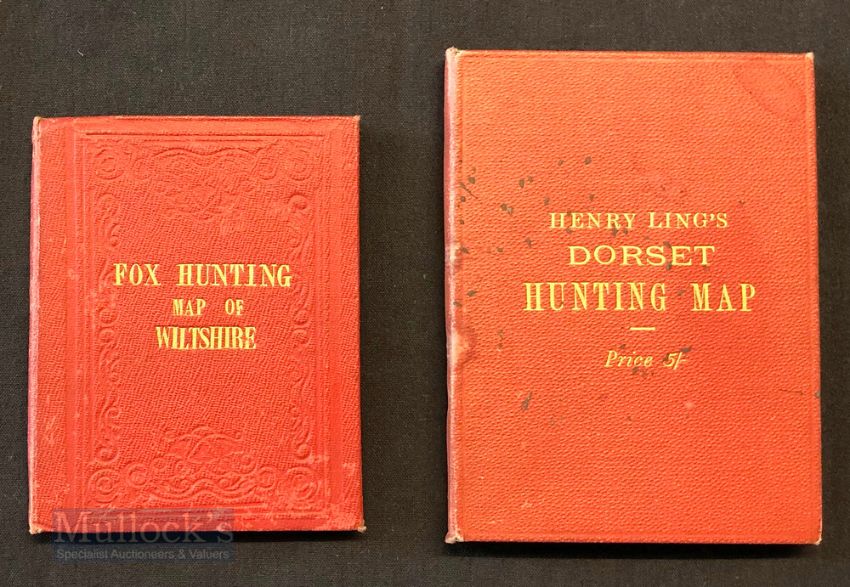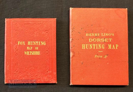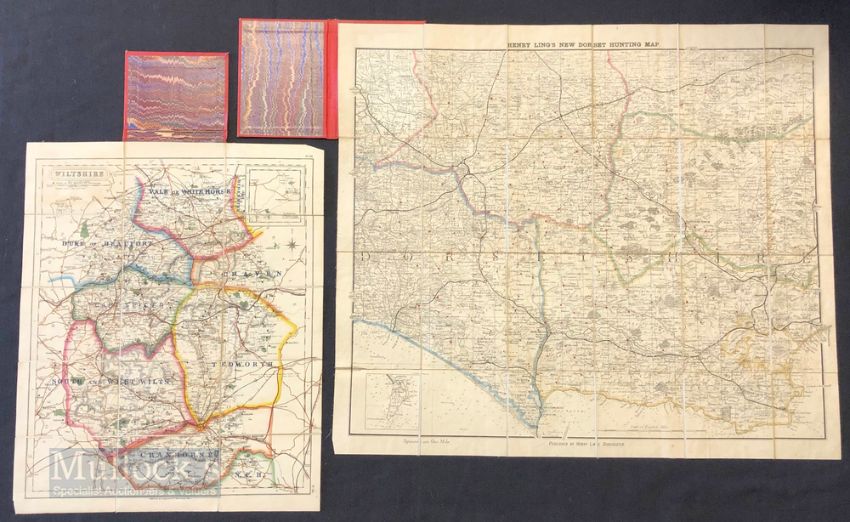 Early Hunting Maps – featuring Henry Ling’s New Dorset Hunting Map coloured, linen backed with hard board covers, together with a Fox Hunting Map of Wiltshire with colour, linen backed, published by Longmans & Co, stamped Stanford to the reverse, with hard boards – both appears in A/G condition overall (2)