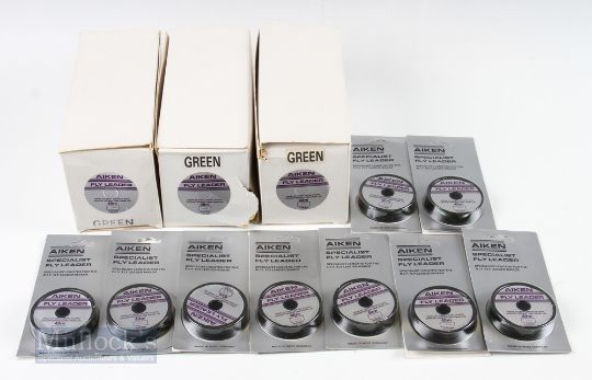 19x Aiken Fly Leeder 40M Spools 10x 4.4lb and 9x 5lb, mostly as new on cards in 3 trade boxes