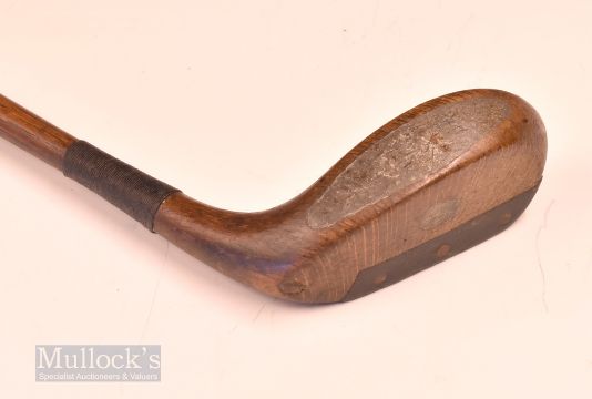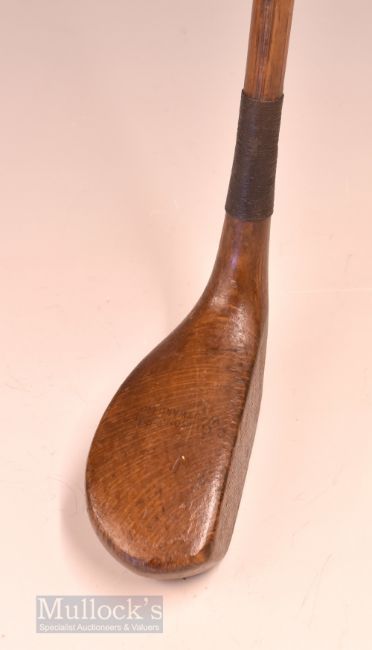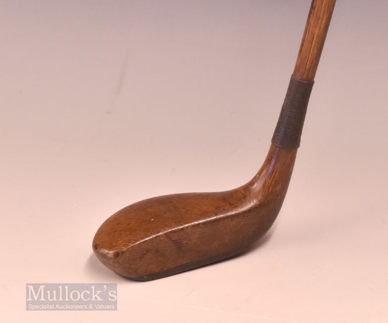 Longnose Mallet head style socket head beech wood putter with bore thro’ sole – the St Andrews Bend shaft fitted with the original black leather grip with underlisting – beautifully weighted for the hickory play. Note From The David Easby Estate