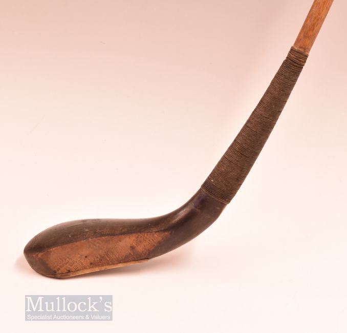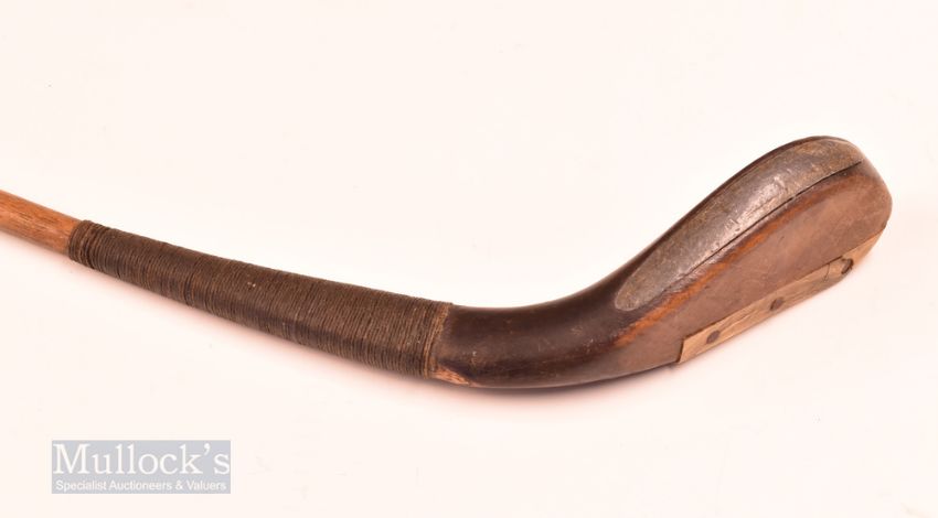 Early McEwan dark stained beech wood longnose play club c1875 – head measures 5.75” x 1.7/8” x 1 1/8” deep - overall 43.5” – still retaining the original hide grip with underlisting. Note From The David Easby Estate