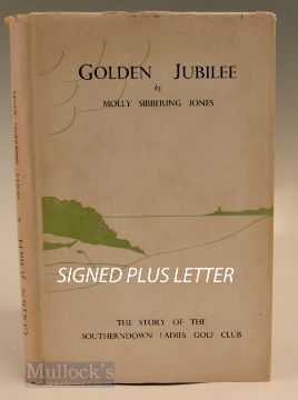 Interesting signed Ladies Golf Book and Related Ephemera – “Golden Jubilee – The Story of The Southerndown Ladies Golf Club” 1st ed 1957 signed to the front free end plate by both the author Molly S Jones and illustrator Katherine Stockwood dated 1964 – illustrated and c/w dust jacket together with a letter from Royal Porthcawl to Jones being elected a non-playing member (£5) in 1969 – makes for a really interesting read. Note From The David Easby Estate