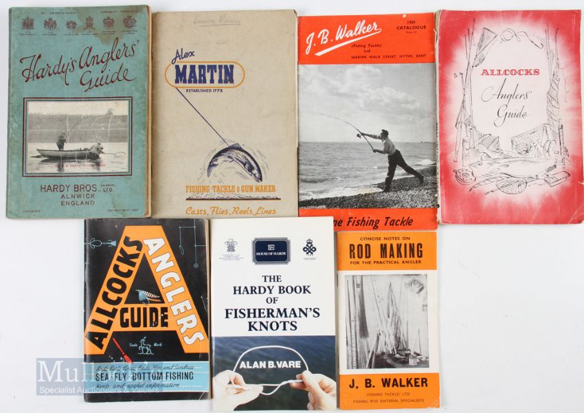 A Collection of Fishing Guides Hardy 1937 guide and a 1989 handbook Allcocks guide 1961 and another, Alex Martin 1949 catalogue/price list plus loose pages from 1949, J B Walker note book and 1959 catalogue