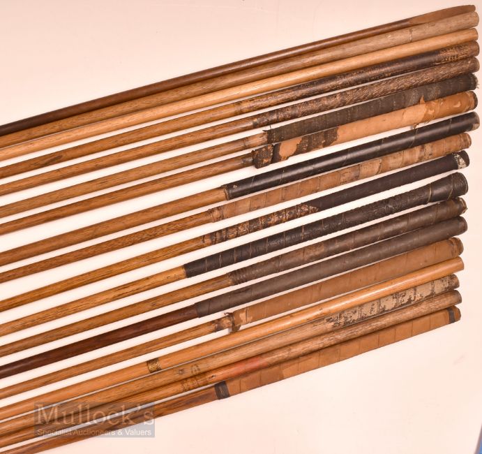 Collection of 18 various mixed shafts socket neck, spliced neck and irons of various lengths – all pulled from various period clubs and some retaining the original leather grips