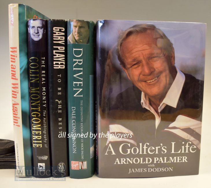 Interesting Collection of Signed Golfing Books Mostly Autobiographies and Major Winners (5) - Arnold Palmer - “A Golfer’s Life” 1st ed 1999 signed to the first title page; Nick Faldo - “Driven - The Definitive Biography” 1st ed 2001 signed to the main title page; Gary Player - “To Be The Best - Reflections of a Champion” 1st ed 1991 signed to the front free end plate; Colin Montgomerie - “The Real Monty” 1st ed 2002 signed to the first title page; and Curtis Strange - “Win and Win Again!” 1st ed 1990 signed to the front free end plate - all with dust jackets hence in (G) Note From The David Easby Estate