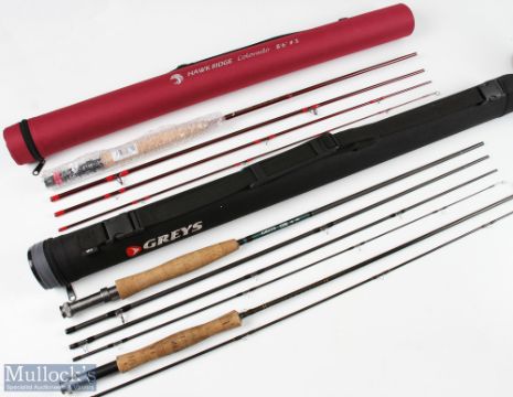 3x Carbon Fly Rods – Greys GS 9ft 4 piece, Hawk Ridge Colorado 8ft 6” 4 piece line 5#, both in cordura tubes and a Craddock, Redditch 8ft 2 piece line 5/6# rod (3)