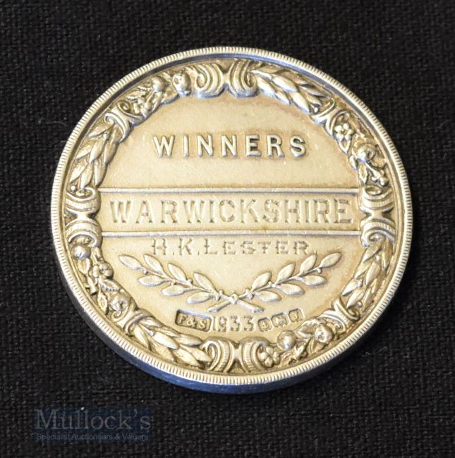 1933 Men’s Inter County Cup Lawn Tennis Association Silver medal hallmarked, inscribed ‘Winners Warwickshire H.K Lester’ to the reverse, comes with newspaper cutting of Lester with press notes below, 33mm dia