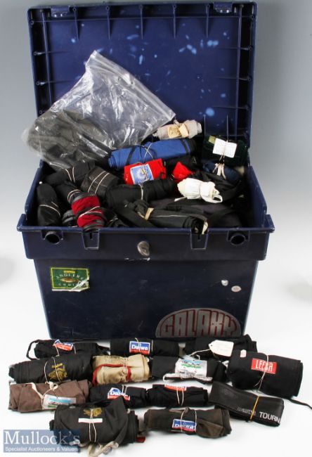 Large Collection of Fishing Rod Bags (100+) by various makers to include Daiwa, Shakespeare, Sundridge, plus others all in a large Blue Plastic Riva Fishing Box