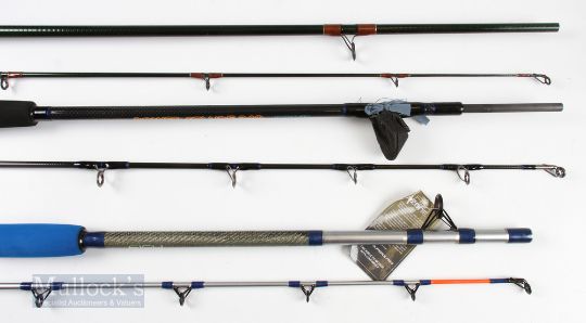 3x Various Rods – Aurora 12+ Fish Super Glass 7ft 2 piece, line 12lb to 20lb, appears unused, Ron Thompson Power Silure 240, 2.4m 2 piece, appears unused and a Masterline John Wilson Wanderer Stalker 9ft 2 piece lure rod, with very light use, all in mcb. (3)