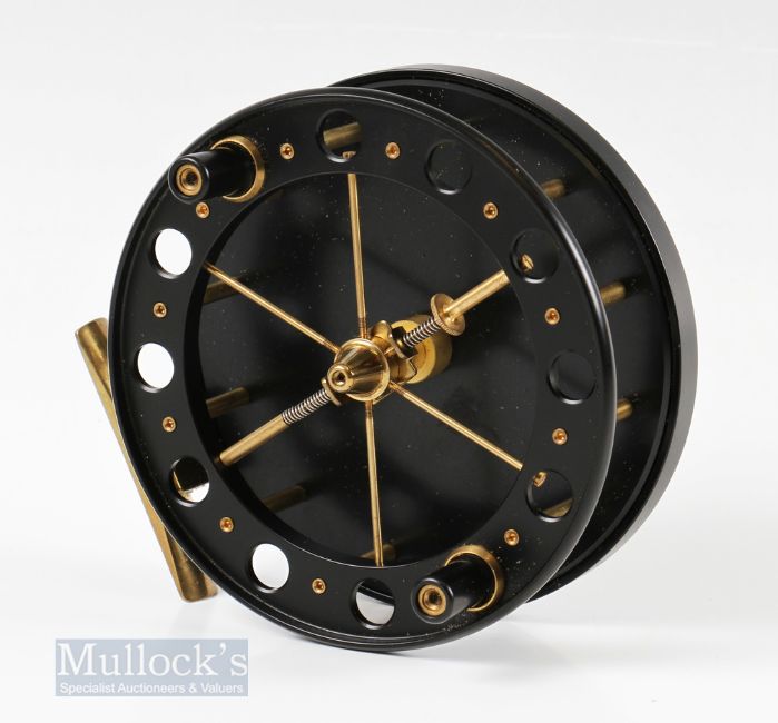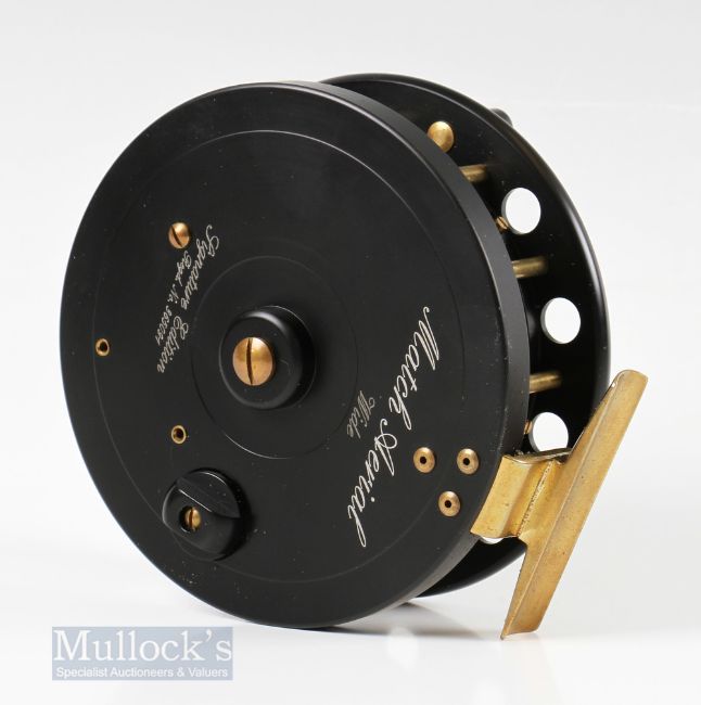 Match Aerial Signature Edition 4 ½” Wide Drum Centre Pin Reel with ventilated spool with twin handle, numbered to rear 365091, appears unused with case