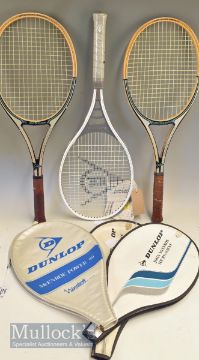 3x Dunlop Tennis Rackets – Vibrotech McEnroe Power 90, unused with attached label, and 2x John McEnroe Tournament rackets, all with head covers (3)