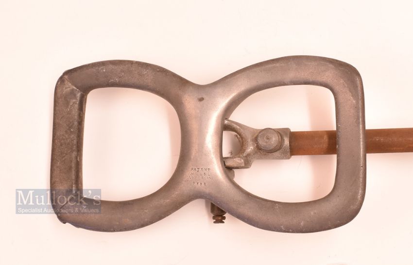 Interesting W Mills Sunderland Pat Alloy adjustable shooting stick no 2058 – c/w adjustable height, quick release folding seat and screw on alloy disc base – all in good working order