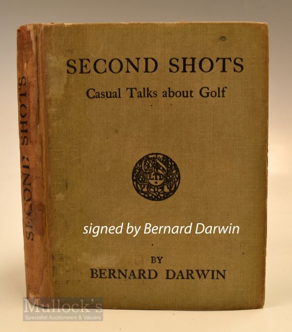 Darwin, Bernard signed book - “Second Shots - Casual Talks about Golf” 1st ed 1930 signed to the title page – cloth boards (dust stained and discoloured spine) ex Schulenburg Library – clean internally. Note From The David Easby Estate