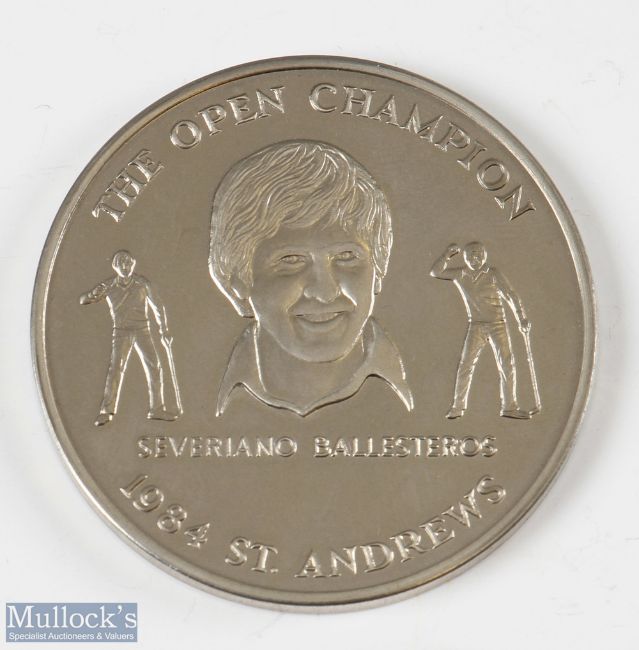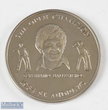 Severiano Ballesteros 1984 Open Golf Championship Commemorative Medallion – 113th Open played at St Andrews embossed on the obverse with Claret Jug and on the reverse The Open Champion featuring Ballesteros – comes in the official box. Note From The David Easby Estate
