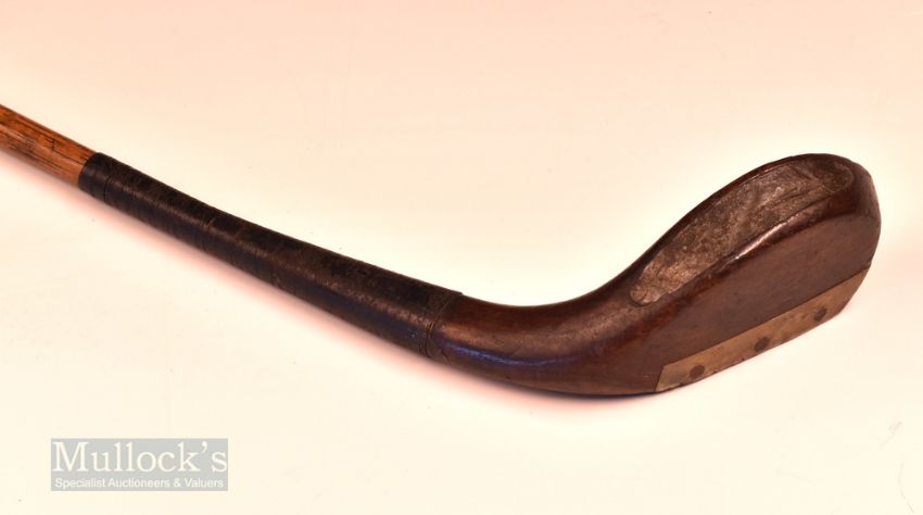 Robertson and Anderson Edinburgh late longnose scare neck putter c1895 – fitted with original hide grip with underlisting – a well weighted head – up right lie making it very playable for the hickory connoisseur golfer. Note From The David Easby Estate