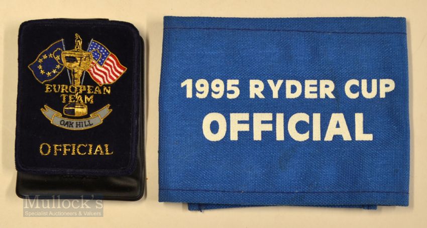2x 1995 Ryder Cup “Official” items – European Team Official embroidered and braided blazer pocket badge (3.5 x 3”) and a Blue Cloth Official Ryder Cup on Course Arm band.