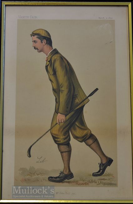 John Ball Original Vanity Fair Chromolithograph Golfing Print by ‘Lib’ - titled ‘Mr John Ball Jnr.’ publ’d March 5th, 1892 – printed by Vincent Brooks Day & Son Lith.