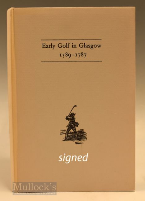 Hamilton, David signed – “Early Golf in Glasgow 1589-1787” publ’d in 1985 no 123/250 ltd ed copies, pictorial board covers, 23p, incl. Illustrated maps and facsimile frontispiece analysis of the neglected poem Glotta of 1721 describing golf on Glasgow Green. Student golf is involved, and it shows that early golf was not confined to Scotland's east coast (sunlight fading to edge of board and spine) otherwise (G). Note From The David Easby Estate