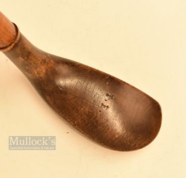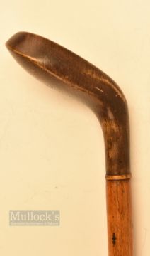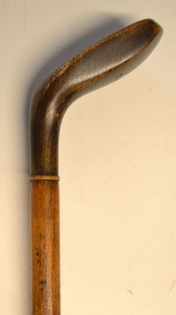 Period Sunday Golf Walking Stick – fitted with large brown wood handle stamped with the initials T.F to the crown c/w stout rigid shaft with brass tip overall measures 37.5” overall