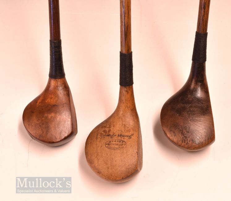 3x James Braid Signature socket head brassies – 2x retailed by Jacques & Son London – all with a variety of original full length leather grips.Note From The David Easby Estate