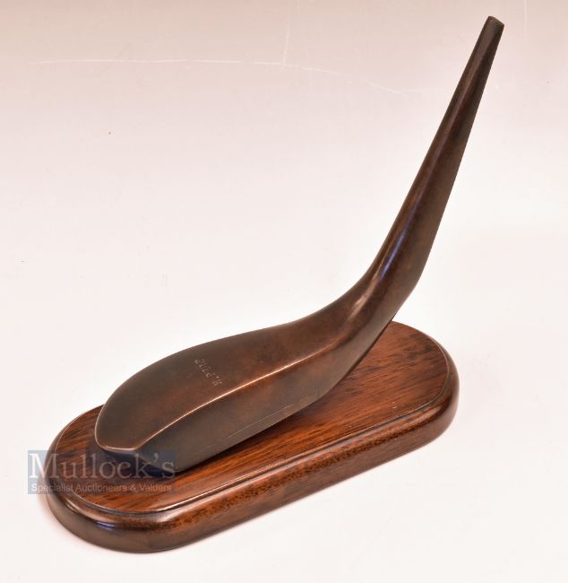 Fine H Philp bronze longnose play club head – stamped no. 1 on the rear of heel mounted on dark stained mahogany base – overall 7.52h x 8” Note From The David Easby Estate