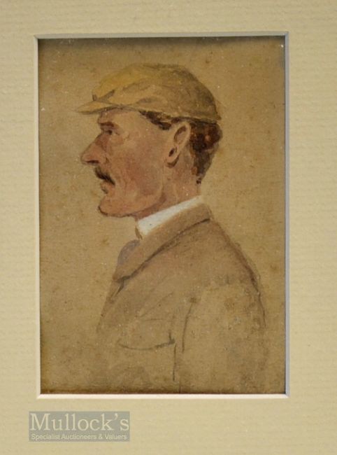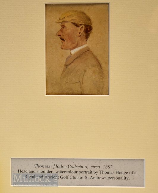 THOMAS HODGE – (b.1827 – d.1907) - St Andrews Personality colour sketch – unattributable head and shoulder profile – image 3.75 x 2.5” overall 15.5” x 11.5”. Note comes with further typed details below c1887. Note From The David Easby Estate