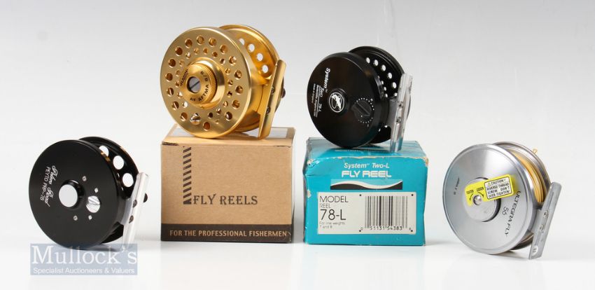 4x Assorted Fly Reels – Shimano Ultegra 5/6 3” reel with counter balance handle, in Farlows pouch with light use, together with Fladen Warbird 8/9 3 ¼” wide drum reel with box, Scientific Anglers System Two 78-L 32 with box and a Peters Road Peyto PRP-78 3” fly reel, all appear unused (4)