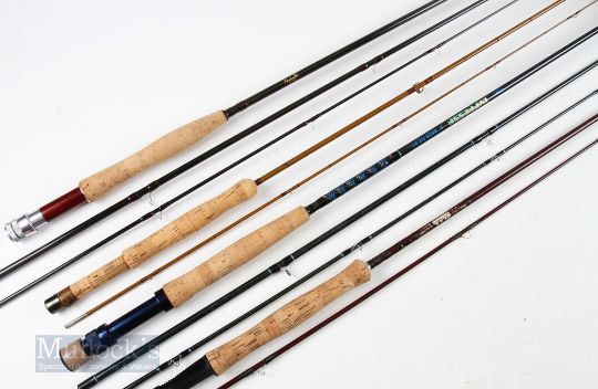 4x Various Fly Rods – Nielson carbon 10ft 3 piece, line 6/7# with some light use, Fibatube, Alnwick 6ft 1 in 2 piece, line 3.5#, Apollo tubular steel “The Brook” 6ft 2 piece in mcb and a Fox Impressa Bass 9ft 3 piece, line 9# in cloth bag (4)