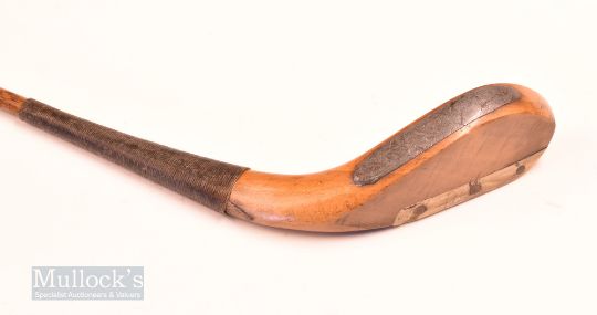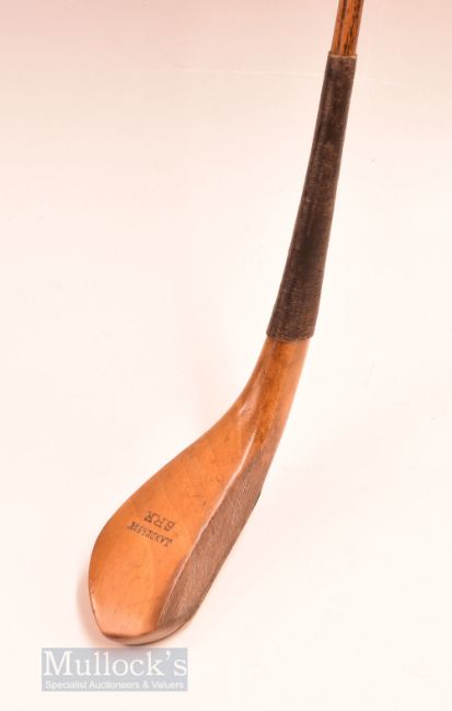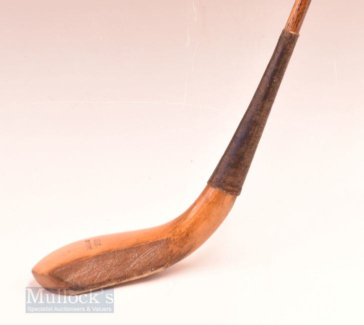 Stunning J Anderson golden Beechwood long spoon c1865 showing the fined ridge back seem under the scare, curved face head measures 6” x 1” x 1.75” measures 44” overall and fitted with a fine hide grip with thick underlisting. He was three times open Champion in 1877, 1878 and 1879.