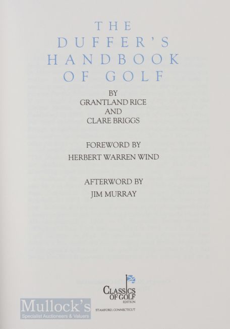 Rice, Grantland & Clare Briggs -“The Duffer’s Handbook of Golf” reprint of the original copy 1926 publ’d 2003 Classics of Golf Series Edition Connecticut - in the original green and gilt cloth boards with spine – appears unread in Classics of Golf slip case