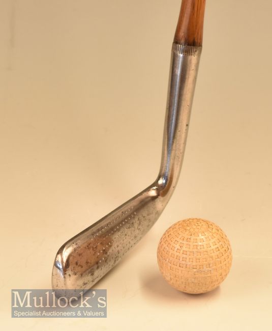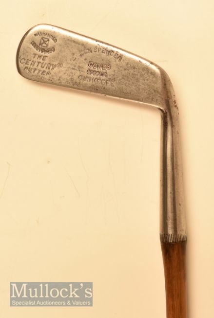 Very interesting F H Ayres “The Century Putter” convex face wry neck putter stamped Len Spencer Cowes and fitted with original full length leather grip