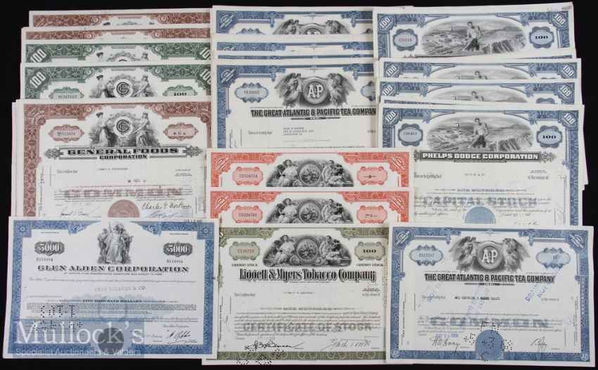 American Share Certificates paid up share certificates To Include Phelps Dodge Corporation, Liooett & Myers Tobacco Company, Glen Alden Corporation, General Foods Corporation, The Great Atlantic & Tea Company (#50)