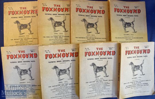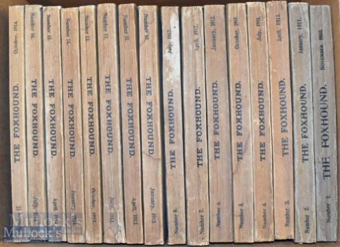 The Foxhound from No 1 1910 onwards and includes No 1 1910, No2 1911, No 3 1911, No4 1911, No5 1911, No6 1912, No 7 1912, No8 1912, No 10 1913, No11 193, No12 1913, No14 1914, No15 1914, No16 1914 and No 17 1914, includes maps, various hunts such as Belvoir, The Meath, Hunter Breeding, The Quorn, The Warwickshire, Peterborough Hound Show, The New Forest and more, condition mixed with some wear at spines but generally appear G overall (16) Small Box