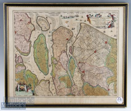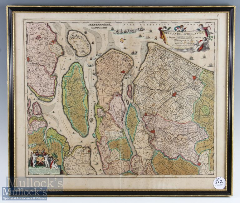 Nicolai Visscher c1750 Map of South Holland hand coloured displaying arms of Jacob van der Dussen, framed measures 66x46cm approx. appears in good condition overall