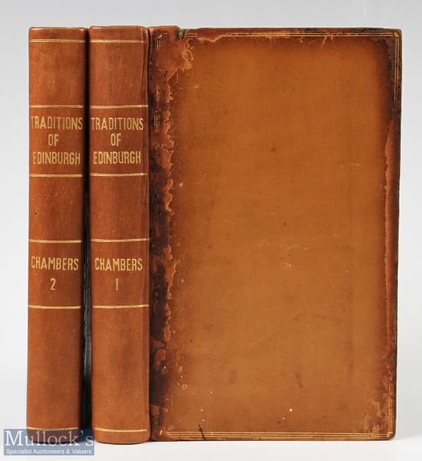 1825 'Traditions of Edinburgh' by Robert Chambers Vol I and Vol II printed W&C Tait, both bound in leather boards, sign of rebinding, internally clean, Vol I with slight tear and fold to pages internally (2)