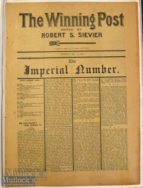 1910 The Winning Post 'The Imperial Number' Newspaper by Robert S Sievier dated Saturday May 14 a large format newspaper measuring 33x45cm, appears in good condition