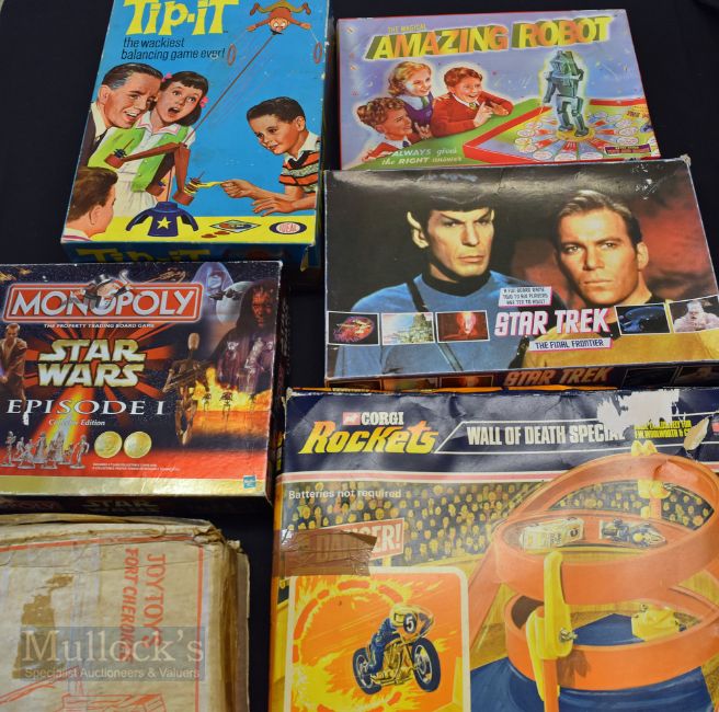 Good Selection of Games to include Star Wars Monopoly with collectable tokens, Ideal Tip It, Star Trek, Corgi Rockets Wall of Death - has wear/ tape to box and missing vehicles, Amazing Robot - 2009, Joy Toys Wooden Fort, Sea Rover Catamaran all appear to be complete (7)