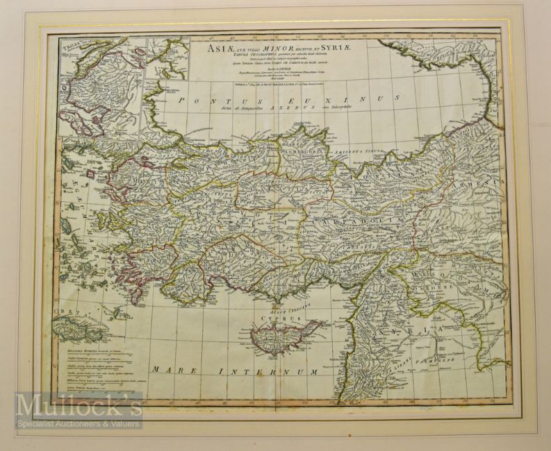 1821 Turkey Map by Richards Holmes Laurie, Asia Qua Vulgo Dicatur Et Syria map after D'Anvill 1764, Shows Turkey and surrounding states including parts of Greece, Armenis, Cyprus etc hand coloured with centre fold in a card mount overall size 77cm x 66cm
