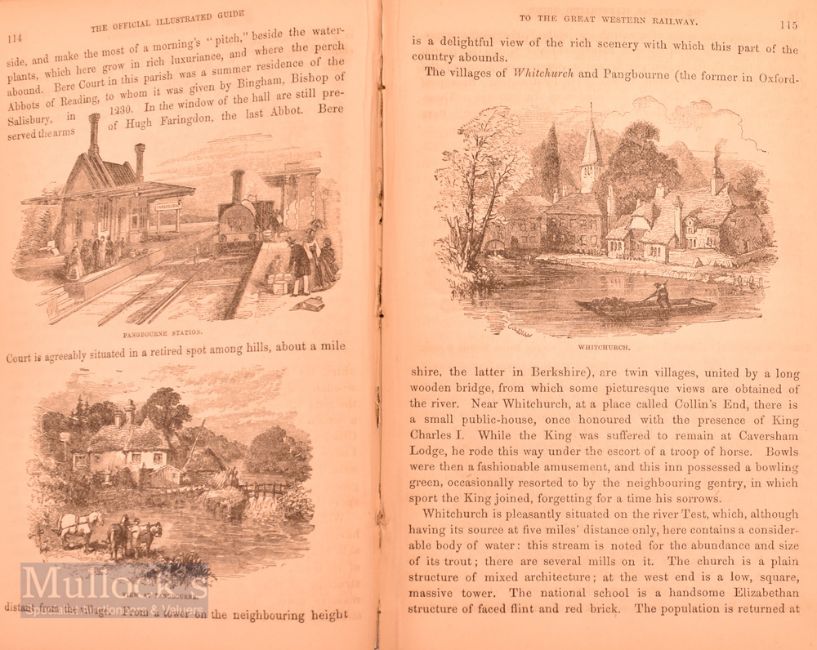 The Official Illustrated Guide To The Great Western Railway and The Official Illustrated Guide To The Bristol & Exeter, North & South Devon, Cornwall & South Wales Railways by George Measom, 1860 an attractive compendious pictorial book with a total of 800 pages covering the Great Western Railway plus 280 pages for The Bristol & Exeter Railway etc. plus 216 pages of advertising at the back, some particularly the hotel with fine illustrations. An impressive publication with 620 fine engraved illustrations which are of the railway and the stations, there are a large number of full page panoramic views of factories and industry of the period, plus a number of picturesque towns and villages etc. Also detailing all the stations and places of interest along its lines and the then present operations of the railway. In cloth board binding with gold tooling, size 5" x 7¼" and 2½" thick.