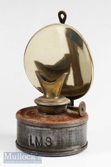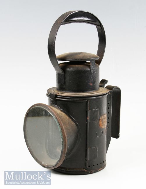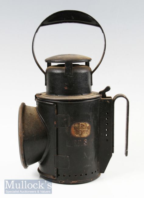 Triple Aspect LMS Railway Hand Lantern with brass LMS plate of R8967, glass multi panels in good condition, its burner is marked LMS