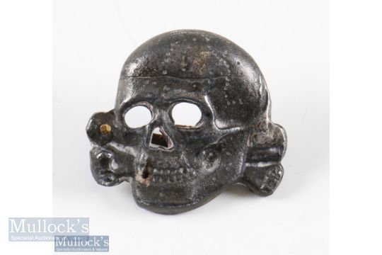 Rare WWII Period Third Reich Silver stamped officers SS Totenkopf for the Shirmutze marked .800 verso, appears repaired, replaced brass blades, with oxidation apparent, A/F