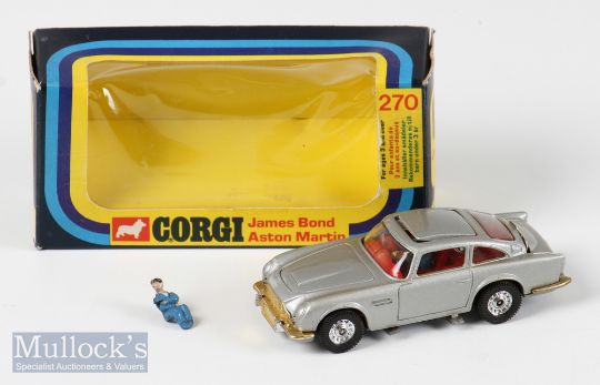 Diecast Corgi Toys 270 James Bond Aston Martin – Silver example with 2 bad guys, in window box slight crushing to plastic window