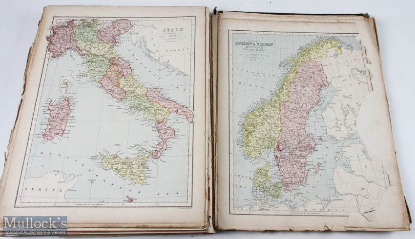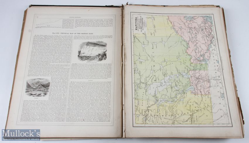 c1880 - The International Atlas and Geography Modern, Historical, Classical and Physical, by James Bryce, William Collier and Leonhard Schmitz, London and Glasgow, large format, contains hundreds of Maps etc, loose at spine in places, covers loose, some tears to various pages, condition A overall