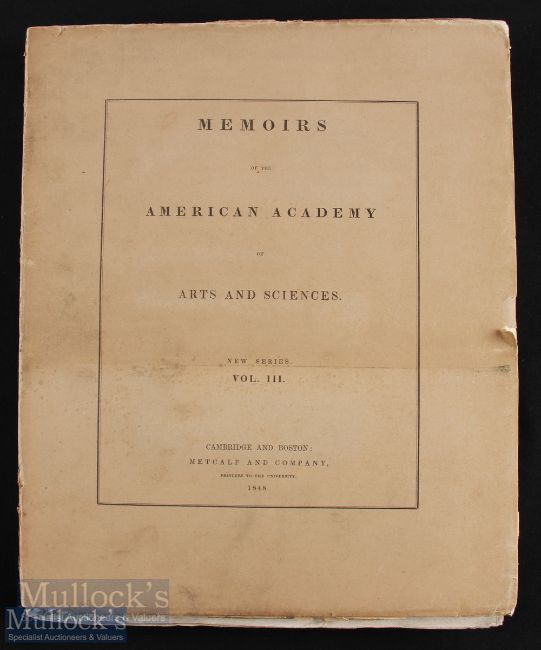 USA – Memoirs of the American Academy of Arts and Sciences, New Series Vol 3 1848 with contributors by Edward Hitchcock on fossil pachyderm, with plates in original wraps