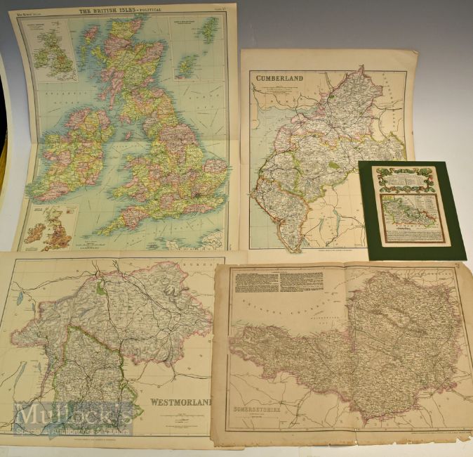Maps - 22x British Loose Maps, to include British Isles, Somerset, Cumberland, Westmoreland, Berkshire by George Philips & Son, J Bartholomew, Edward Weller