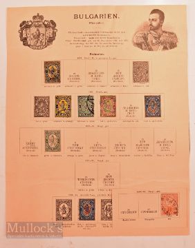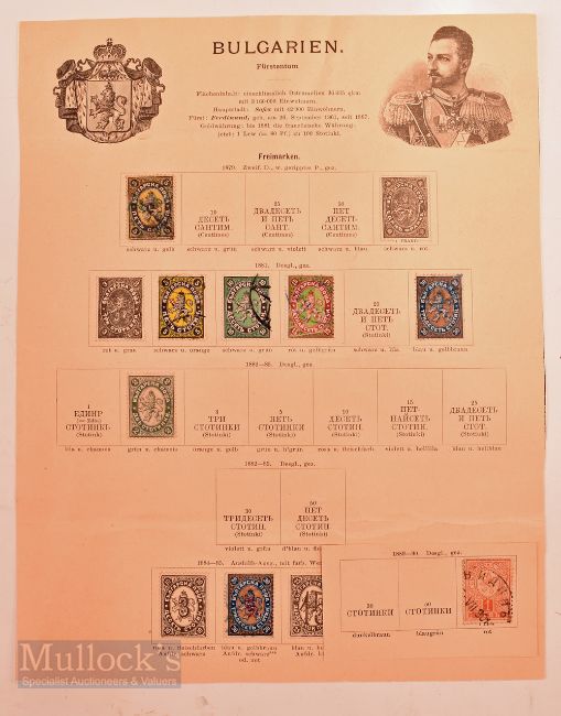 Bulgaria - Old Album Sheet of early Postage Stamps, 1890s, has 8 stamps both used and unused ranging from 1879 to 1889