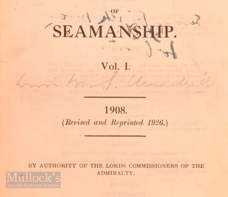 Winston Churchill (1874-1965) Signed Book – 1926 'Manual of Seamanship' Vol I, 1908 revised and reprinted 1926, with signature in pencil to title page, printed HMSO, given as a gift by Mary Soames to original vendor.