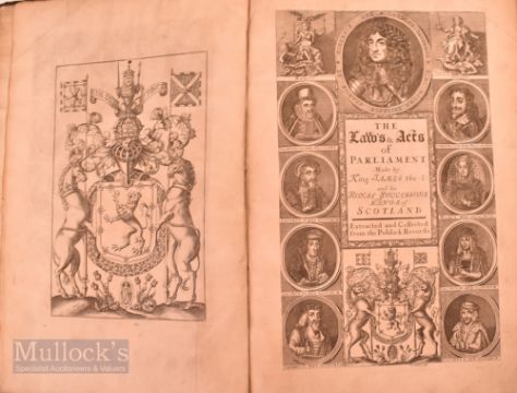 1681 Bound volume of 'The Laws and Acts of Parliament made by King James the I and his Royal Successors Kings of Scotland' Bound, extracted and collected from the public records, printed by David Lindsay, large format, rebound with leather spine, intact, appears clean internally