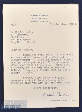 Autograph – Victoria Cross - Leonard Cheshire (1917-1992) Signed Typed Letter dated 3 Oct 1969. Cheshire was a highly decorated British RAF pilot during the Second World War, among the honours Cheshire received as a pilot is the Victoria Cross, good signatures in ink