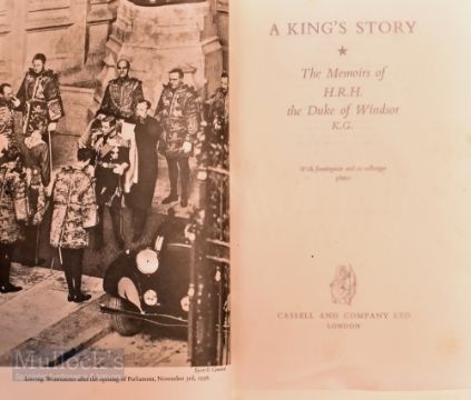 Royalty – King Edward VIII Signed 'A King's Story' Book limited edition No89/250 1951, 'The Memoirs of HRH The Duke of Windsor', London: Cassell and Company, bound in green leather, some discoloration to boards, HB, internally clean, clean signature, good overall example