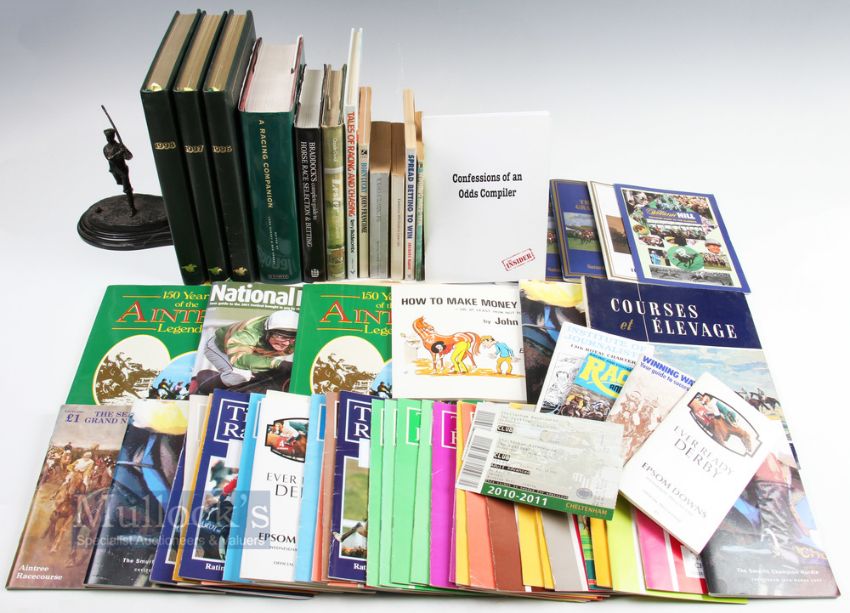 Quantity of Horse Racing Books race cards sporting life diaries, tickets and magazine race meet menu. To include 1968 courses etc, Elevage, a racing companion, The Sporting Life Diary 1996-98, lots of Timeform race cards selection form the 1990s, Grand National programmes 1990 1993, Aintree programme 1994, plus more (box)